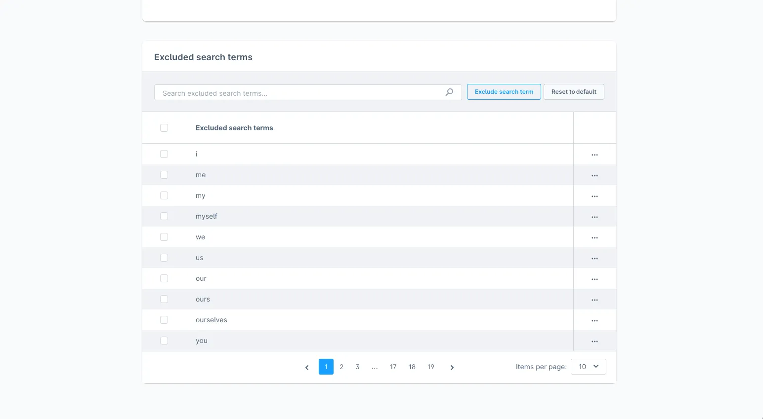- It then excludes words defined in the “Excluded Search Terms” configuration.