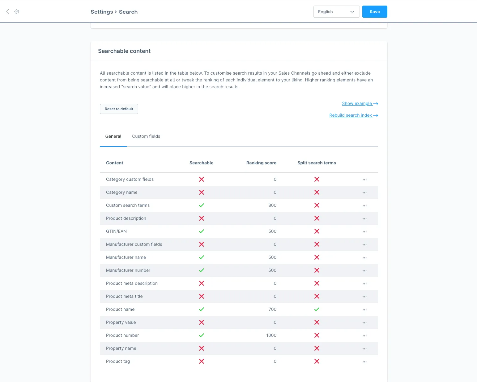 - Shopware automatically generates keyword data based on your searchable content configuration at product indexing.